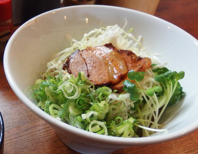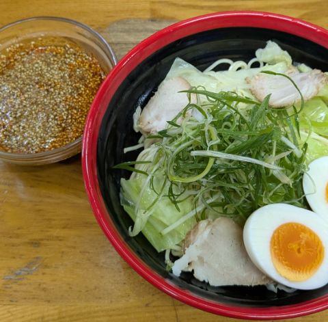 冷たい麺に辛めのつけダレ、キャベツやチャーシューが山盛り。辛さの選択肢が豊富で、地元民は高倍率を平気で頼みます。