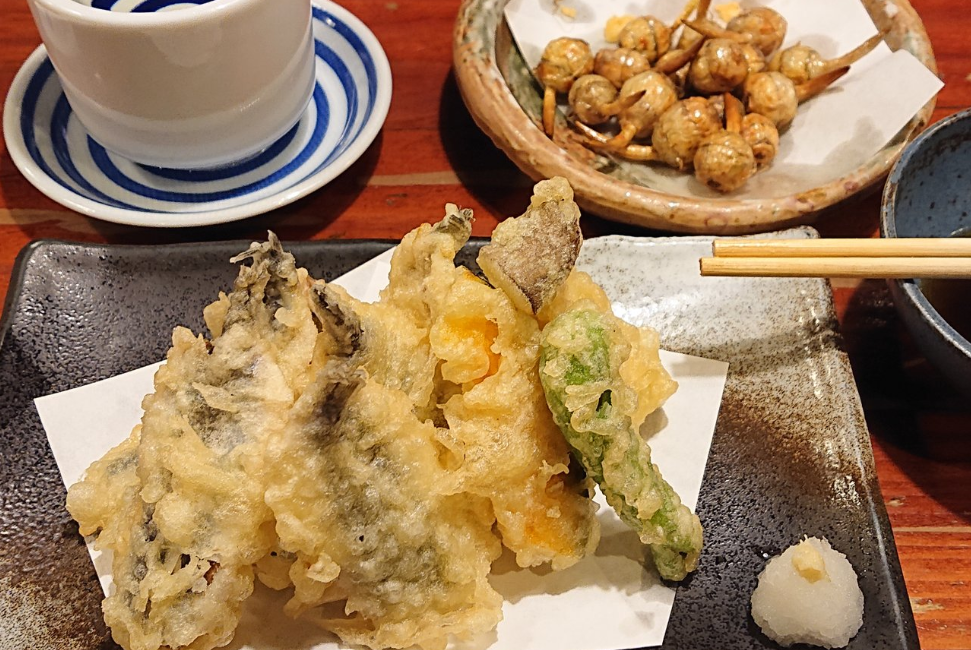 牛ホルモンを天ぷらにした一品。サクッとした衣と中のジューシーさが地酒に合います。