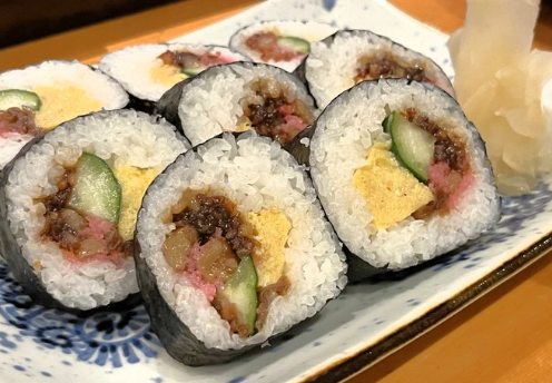 ■ 2. ケンミンショーで話題の「クルミ太巻き」|甘じょっぱい新潟限定寿司